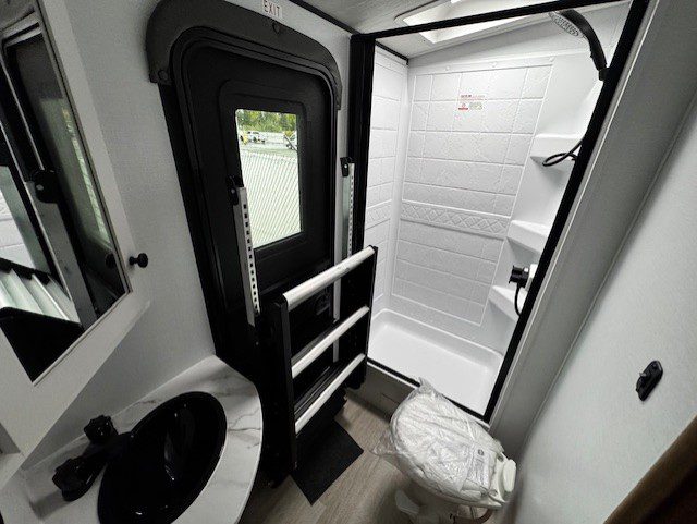 *Large Bathroom With Exterior Door For Quick Access To The Restroom A The Campsite Or Pit Stops On The Road